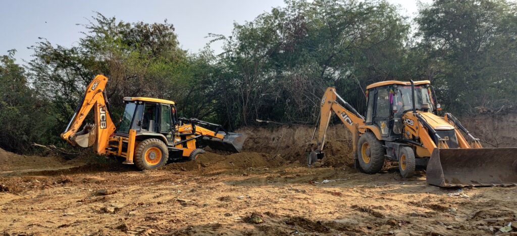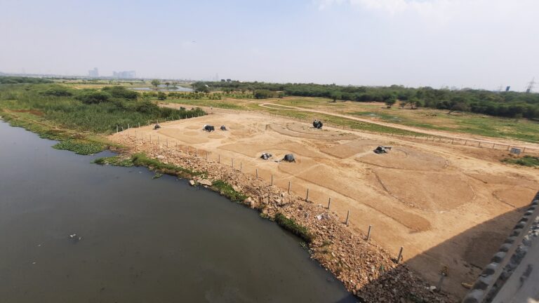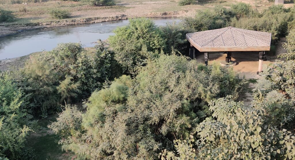 As a response to this ecological crisis, a unique reforestation project was undertaken by us along the Barapullah drain near Sarai Kale Khan. This drain is one of the largest contributors to Yamuna’s pollution—carrying domestic sewage, solid waste, and industrial effluents, accounting for roughly 30% of the river’s total contamination. We were to prove ourselves on a 2-acre pilot project patch of degraded, lifeless land—choked by invasive species, sewage, and other pollutants. Today, this very stretch has been reclaimed and restored into a lush, self-sustaining forest of native riverine species.